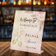 Para una despedida de soltera. Un fondo degradado rústico de color rosa dorado y rosa, flores rosadas y hierba pampas. Burbujas y una copa de champán. Personaliza y añade un nombre.