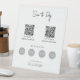 Un diseño moderno de anuncios peatonales de negocios que muestra tus códigos QR de pago de negocios, el sitio web de negocios y el identificador de medios sociales, así como logotipos de aplicaciones de pago. Un código QR personalizado minimalista, signos de negocios de medios sociales. Una forma sencilla y profesional de permitir a sus clientes escanear, pagar, ver menús, listas de precios, hacer citas, etc. Personalizar el texto y hágalo suyo.