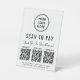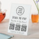 Simple señal de peatón de mesa para tu negocio con 3 o tus códigos QR vinculados a aplicaciones de pago para que los clientes puedan buscar pagos móviles sin contacto. Añade tu logotipo, códigos QR, número de teléfono y dirección de calle en una tipografía simple.