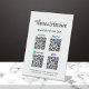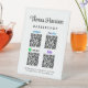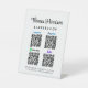 Firma de tabletop peatonal de personalizado para su empresa con su nombre o marca en un guión de firma elegante y códigos QR de Venmo, Paypal, Zelle y CashApp para que los clientes puedan buscar pagos. Sube tus códigos QR y agrega tu información de contacto en letras simples y limpias.
