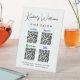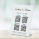 Moda personalizado tabletop signo de tabletas peatonales para su negocio con su nombre o marca mostrada en un guión de firma elegante y códigos QR Venmo, Paypal, Zelle y CashApp para que los clientes puedan buscar pagos. Sube tus códigos QR y agrega tu información de contacto en letras simples y limpias.