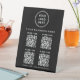 Give customers multiple ways to connect with your business using this multi-QR Code black pedestal sign, designed for clarity, flexibility, and a polished professional look. Featuring a clean layout, modern white lettering, and space for your logo and business name, this tabletop sign allows you to display up to 4 scannable QR codes, each with its own custom label for clear navigation. Ideal for restaurants, cafés, salons, boutiques, clinics, gyms, offices, events, and trade shows, this pedestal sign lets customers quickly access different destinations—such as your website, menu, booking page, pricing, reviews, social media profiles, or payment links—all from one convenient display. Freestanding and easy to place on counters, desks, or reception areas, this QR code pedestal sign helps streamline customer interactions, reduce printed materials, and support a modern, contactless experience while reinforcing your brand identity.