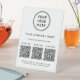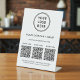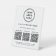 Simplify customer engagement and showcase everything your business offers with this custom 3 QR codes pedestal sign, designed for modern, high-traffic counters and reception areas. Featuring a clean white background, minimalist typography, and space for your logo and business name, this professional tabletop sign allows you to display up to three scannable QR codes, each with its own custom label. Perfect for directing customers to multiple destinations -- such as menus, services, pricing, booking pages, payments, reviews, social media, or Wi-Fi -- this sign creates a seamless, contactless experience. Zazzle automatically generates each QR code from the website links you enter, making setup quick and effortless with no design or technical skills required. Ideal for restaurants, cafés, salons, spas, retail stores, clinics, offices, events, and pop-up shops, this multi-QR pedestal sign reduces clutter, replaces printed handouts, and presents your brand in a polished, professional way.