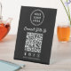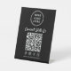 Make it effortless for customers to connect with your brand using this clean, modern black tabletop pedestal sign. Designed for countertops, checkout areas, and event tables, this sign features a bold QR code layout that instantly directs customers to your website, menu, booking page, or Facebook, Instagram, TikTok and X social media profiles. Zazzle automatically generates the QR code from the website link you provide. The minimalist design keeps your branding front and center, with space for your logo at the top and a clear call-to-action that encourages engagement. Perfect for retail stores, cafés, salons, trade shows, pop-ups, and professional events, this pedestal sign stands upright and remains highly visible without taking up valuable space. Customize it with your brand logo, social media handle, and preferred messaging to create a polished, cohesive look that reinforces your brand at every customer touchpoint.