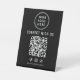 Make it effortless for customers to connect with your brand using this modern black and white "Connect With Us" tabletop pedestal sign. Designed for countertops, checkout areas, and event tables, this sign features a bold QR code layout that instantly directs customers to your website, menu, or booking page, and Facebook, Instagram, and TikTok social media profiles. The minimalist design keeps your branding front and center, with space for your logo at the top and a clear call-to-action that encourages engagement. Perfect for retail stores, cafés, salons, trade shows, pop-ups, and professional events, this pedestal sign stands upright and remains highly visible without taking up valuable space. Customize it with your brand logo, social media handle, and preferred messaging to create a polished, cohesive look that reinforces your brand at every customer touchpoint.