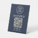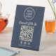 Make it effortless for customers to connect with your brand using this modern blue "Connect With Us" tabletop pedestal sign. Designed for countertops, checkout areas, and event tables, this sign features a clean QR code layout that directs customers to your website, menu, booking page, or Facebook, Instagram, and TikTok social media profiles. Zazzle automatically generates the QR code from the website link you provide, ensuring accuracy and a seamless setup. The minimalist design keeps your branding front and center, with space for your logo at the top and a clear call-to-action that encourages engagement. Perfect for retail stores, cafés, salons, trade shows, pop-ups, and professional events, this pedestal sign stands upright and remains highly visible without taking up valuable space.