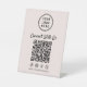 Make it effortless for customers to connect with your brand using this clean, modern light pink tabletop pedestal sign. Designed for countertops, checkout areas, and event tables, this sign features a bold QR code layout that instantly directs customers to your website, menu, booking page, or Facebook, Instagram, TikTok and X social media profiles. Zazzle automatically generates the QR code from the website link you provide. The minimalist design keeps your branding front and center, with space for your logo at the top and a clear call-to-action that encourages engagement. Perfect for retail stores, cafés, salons, trade shows, pop-ups, and professional events, this sturdy pedestal sign stands upright and remains highly visible without taking up valuable space. Customize it with your brand logo, social media handle, and preferred messaging to create a polished, cohesive look that reinforces your brand at every customer touchpoint.