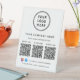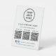 Simplify customer engagement and showcase everything your business offers with this custom 3 QR codes pedestal sign, designed for modern, high-traffic counters and reception areas. Featuring a clean white background, minimalist typography, and space for your logo business name, and Facebook and Instagram social media handle, this professional tabletop sign allows you to display up to three scannable QR codes, each with its own custom label. Perfect for directing customers to multiple destinations -- such as menus, services, pricing, booking pages, payments, reviews, social media, or Wi-Fi -- this sign creates a seamless, contactless experience. Zazzle automatically generates each QR code from the website links you enter, making setup quick and effortless with no design or technical skills required. Ideal for restaurants, cafés, salons, spas, retail stores, clinics, offices, events, and pop-up shops, this multi-QR pedestal sign reduces clutter, replaces printed handouts, and presents your brand in a polished, professional way.