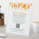 Mesa de restaurante a distancia social o huésped de sala de espera QR código de señalización en un hermoso diseño de hojas de otoño. Ayude a mantener a sus invitados seguros y al gobierno informado de las personas que usan su lugar de reunión con este fácil inicio de sesión usando el signo de código QR u otras instrucciones. Ideal para mantener a sus clientes seguros y sentados mientras se inscriben. Se puede usar para el distanciamiento social, así como para los lugares de marketing y localización de clientes y mesas de eventos durante la temporada otoño/otoño. Agregue su propio código QR u otras instrucciones. Ideal para recibir a los huéspedes y mantenerlos seguros en eventos y negocios de hospitalidad. Pintura y diseño de acuarela original de www.mylittleeden.com en Zazzle.