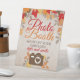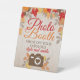 Foto Caída Booth Bridal Shower o Rótulo Pedestal Boda. Con hojas de otoño brillantes sobre un fondo de madera lavada.