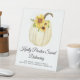En la era del distanciamiento social, hay una hermosa manera de animar a sus invitados a mantenerse a sí mismos y a los demás a salvo. Una calabaza blanca y sencilla decorada con un trío de girasoles amarillos de mostaza ámbar con follaje de hojas pintadas a mano en acuarela por la artista y diseñadora con licencia internacional Audrey Jeanne Roberts. Todos los campos de texto se pueden personalizar para crear sus propios signos. Copyright.