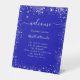 Un fondo azul real, decorado con finos destellos de purpurina plateado. Texto blanco. Personalice y agregue sus nombres y el programa de boda.