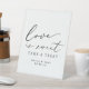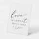 Un elegante cartel para tu boda o mesa de postres de compromiso, con "el amor es dulce" en un estilo moderno de caligrafía negra. Personalice su nombre y fecha de boda. El color de todo el texto se puede editar.