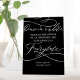 Esta caligrafía romántica boda negro oscuro símbolo de un velador de cuento de hadas es perfecta para una simple ducha de boda o novia. El moderno diseño clásico cuenta con unos llamativos remolinos y unos espléndidos florecientes floridos, con una preciosa y elegante tipografía con letras a mano sobre un fondo negro.