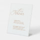 ¿Está planeando un boda de temática bohemia y buscando el Rótulo Pedestal perfecto para coincidir con su estética? Este letrero de bonito diseño presenta un tipo moderno de letra caligráfica que complementa perfectamente cualquier tema boda. El diseño, limpio y moderno, garantiza un diseño elegante y fácil de leer. Nuestros letreros son perfectos para las parejas que desean simplificar su proceso de planificación boda sin sacrificar el estilo. Personalice este signo elegante, haga clic en "Detalles". Para mover el texto o cambiar el tamaño, la fuente o el color, haga clic en "Editar usando la herramienta de diseño". Diseñado para coordinar con para la Colección Invitación a Boda "Chloe". Vea el enlace de la colección en esta página para ver todos los elementos coincidentes de este hermoso diseño.