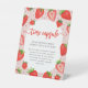 Signo de pedestal de cumpleaños de fresa rosa cápsula del tiempo.