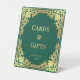 An elegant vintage green and gold "Cards and Gifts" sign, recommended for a vintage wedding.