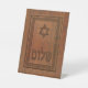 Presenta un "tallado de madera viejo" generado por computadora de un Magen David (Estrella de David), texto que dice "Shalom" y un borde floral.