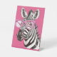 Zebra con gafas rosas Rótulo peatonal fondo rosado diseño AI