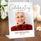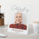 Honor your loved one with this elegant Celebration of Life pedestal sign. Designed as a touching memorial photo sign, it features a clean minimalist layout with space for a personal photo and custom text. Perfect as a memory table sign during a service, this piece brings warmth and beauty to your funeral in signs collection. A heartfelt tribute for the loss of mom, this customizable celebration of life design helps preserve precious memories in a graceful way. 2209.