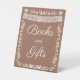 This elegant “Books and Gifts” baby shower sign features delicate white papel picado bunting and ornamental floral accents on a Terracotta background. The graceful script typography creates a refined, timeless look that complements traditional, Mexican-inspired, or classic baby shower themes.