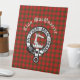Clan escocés MacQuarrie escudo insignia y texto de personalizable en fondo tartán - exhibición en casa o en los Juegos Highland anuales!