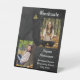 Elegant, dignified classical black designer grad tabletop desktop poster panel sign is ideal for college, university, trade school, high school or any level graduate. Traditional, formal yet simple design features gold charm on the dangling mortarboard tassel in luxurious gold metal effect. Stylish classic swirls in the background add the perfect touch of unique modern elegance for boys or girls. Easily personalized with your name, school, post-graduation reception and other information. You can also customize the background color by entering all your details, then clicking "customize it", then clicking "edit", and choosing a background color. Be sure to customize the front and back backgrounds.