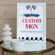 Rótulo para la fiesta de segundo cumpleaños de un niño con un motivo de carrera y una representación de un automóvil azul con llamas. "signo personalizado", según el párrafo.
