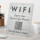 Este moderno y minimalista rótulo de madera blanca sería ideal para cualquier sala de espera, alquiler de inmuebles y hostal. Los clientes, visitantes y clientes pueden conectarse fácilmente a su conexión Wi-Fi local. Puede añadir sus detalles haciendo clic en la opción "personalizar".