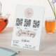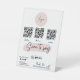 Análisis comercial para pagar el signo de pedestal de código QR. Todo se puede actualizar fácilmente con el logotipo de su propia empresa, códigos QR, texto personalizado, iconos de pago e iconos de los medios sociales.