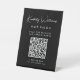Cartel de la mesa de la moda en blanco para su negocio con su nombre mostrado en un guión elegante de firma blanca y tipo de negocio debajo con letras blancas limpias. Ingresa la dirección de tu sitio web para crear un código QR que los clientes y clientes puedan analizar para citas, productos, servicios, horas, etc.