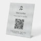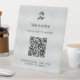 Un clásico fondo falso plateado, texto de color negro. Con el texto: Bienvenido. Personalice y agregue su logotipo de negocio, código QR y texto.