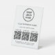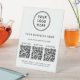 Señal de peatones moderna y profesional en la parte superior de la mesa para su negocio. Sube tu logotipo y 3 códigos QR para que los clientes busquen pago, información, una lista de tus productos, servicios, precios, etc. Etiqueta tus códigos QR y agrega tu nombre de negocio, número de teléfono, dirección de calle, sitio web u otra información en una tipografía simple.