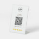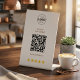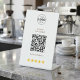 Boost your café’s online presence with this sleek, minimalist review starter. Featuring a crisp white background with sophisticated dark brown typography and golden accents, this design invites patrons to share their love for your brew. The prominent QR code and five-star rating icons provide a professional call-to-action that makes leaving reviews effortless for your customers. Perfect for placement on tabletops, pick-up counters, or at checkout, this modern tool helps turn everyday interactions into valuable social proof for your small business.
