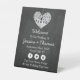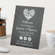 Este cartel de bienvenida boda presenta un romántico árbol colgante, y pronto será marido y mujer, que está tallado en forma de corazón. El fondo de la pizarra hace que esta tabla de asientos sea perfecta para cualquier pareja que planee un boda romántico. Este letrero de bienvenida se puede personalizar fácilmente para adaptarlo a sus necesidades de celebración y será ideal para cualquier recepción romántica de boda. Se pueden encontrar elementos bodas coincidentes en la colección.