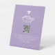 A minimal, modern, elegant college fund Party Pedestal Sign in soft, classic lavender, featuring customizable text and photograph on the front, and on the back elegant chic typography, a graduation cap, QR Code, and customizable message. Simply personalize the details as needed.