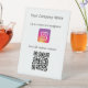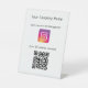 Un práctico símbolo de tabla para mostrar en tu negocio que permite a tus clientes conectarse contigo en medios sociales escaneando tu código QR. En este ejemplo se utiliza Instagram como medio social. Personalice la plantilla con el nombre de su empresa y la dirección URL de Instagram.