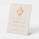 Un letrero de bienvenida de confirmación religiosa rosa y dorado recomendado para una niña.