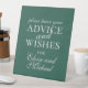Invite a sus invitados a compartir su amor, sabiduría y buenos deseos con este Rótulo Boda Sage Green "Consejos y deseos". Diseñado con un guión elegante y un suave y romántico fondo de sabios, este signo minimalista le da un toque refinado a la decoración de la recepción. Perfecto para mostrar en la mesa de tu libro de invitados o junto con tarjetas de consejo que coincidan, anima con suavidad los mensajes más sentidos de los seres queridos. Un detalle atemporal y reflexivo que convierte las palabras cálidas en recuerdos duraderos.
