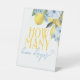 Elegante y Dulce ¿Cuántos Limones Cae Fiesta Juego Rótulo Pedestal. Parte de nuestra colección de fiestas de limón acuarela y ducha de brisa principal floral, pero también funciona muy bien para una pequeña ducha de limón. Con hermosas flores de color azul de pizarra polvorienta y limones amarillos dulces. ¡Muéstrate con estilo junto a tu frasco de gotas de limón!