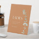 Este letrero de peatón del boda Terracotta Eucalyptus Deco ofrece un minimalista boho y una temática rústica, occidental o desértica. El sencillo eucalipto verde sabio y el follaje suculento complementan el fondo otoñal de terracota, mientras que el tipo art deco combinado con la vegetación botánica y el fondo de naranja quemado crea una versatilidad para combinar con otros productos coloreados de esta colección. Estas combinaciones de colores seguramente harán las delicias de los invitados y de los asistentes a la celebración del matrimonio.