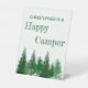 Feliz cumpleaños de camper con árboles de bosque en varios tonos verdes