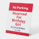Cumpleaños No Parking Reserved Fun Personalize Pedestal Rótulo es una forma divertida de reservar el espacio para esa persona especial en su fecha de nacimiento. Lugar en una fiesta de cumpleaños o en casa. Personalízalo con tu información.