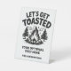 "Let's get toasted" by the campfire! Change the text fields as you wish. Using the editing tool on each side, you can also change the fonts and their sizes and colors if you want. See my store for more camping and hiking items.