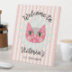 Cartel de bienvenida del gato de Cute Daisy. Presenta un arte folclórico hippy inspirado en el gato rosa la margarita azul pálido con fondo rayado. ¡Se puede cambiar toda la redacción! Para realizar más cambios, vaya a Personalizar esta plantilla. En la parte inferior verás "¿Quieres personalizar este diseño aún más? Haga clic en la herramienta EDIT using Design. Desde ahí puede cambiar algunas fuentes y algunos colores, mover las cosas o borrar lo que necesita.#zazzlemade