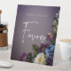 Introducing our exquisite wedding favors pedestal sign that effortlessly marries modern elegance with vintage allure. Set against a moody purple plum background, a soft side loose bouquet comes to life, featuring dark purple, lavender, cream white, and burgundy flowers alongside delicate botanical greenery. This arrangement is elegantly nestled within a soft white blur oval, creating a design that captures the essence of romance in its purest form. Prepare to captivate your guests with a design that speaks volumes of your love story's depth and sophistication. The blend of colors symbolizes the richness of your journey together, while the vintage feel adds a touch of nostalgia to the contemporary design. Created by Simply Farmhouse Press.