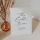 Este delicado negro esta vela quema el símbolo de un velador boda en el monumento es perfecto para un boda moderno. El romántico diseño minimalista presenta una bonita y elegante tipografía negra sobre un fondo blanco con un aspecto limpio y sencillo.