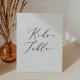 Este delicado símbolo de pedestal para bodas de caligrafía negra es perfecto para un boda moderno. El romántico diseño minimalista presenta una bonita y elegante tipografía negra sobre un fondo blanco con un aspecto limpio y sencillo.