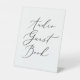 Este delicado letrero de pedestal de libro de boda negro de audio es perfecto para un boda moderno. El romántico diseño minimalista presenta una bonita y elegante tipografía negra sobre un fondo blanco con un aspecto limpio y sencillo.