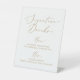 Este delicado y elegante oro, su firma y su firma bebe un símbolo peatonal, es perfecto para un boda moderno. El romántico diseño minimalista presenta una encantadora y elegante tipografía de champán amarillo dorado sobre un fondo blanco con un aspecto limpio y sencillo.